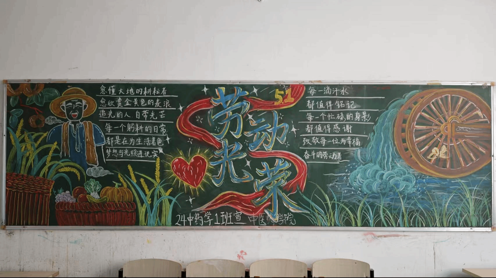 为深入践行“公、诚、勤、朴”的校训精神,弘扬新时代劳动价值观,引导青年学子树立“热爱劳动、崇尚劳动、尊重劳动”的优良风尚,中医药学院于3月21日至4月15日组织开展了“劳动创造美好未来”主题黑板报评比活动。