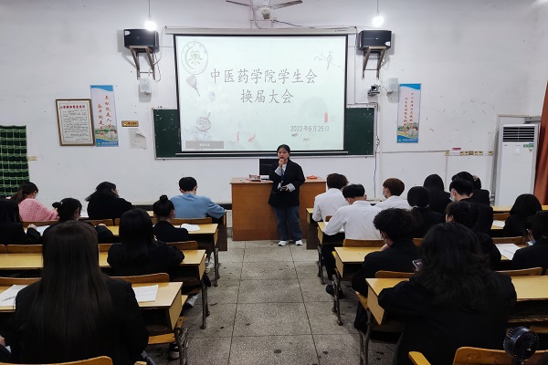 会议伊始,全体起立,奏唱国歌。而后中医药学院团总支书记作团总支年度工作报告。紧接着学生会主席团成员作工作报告。在随后的选举大会上,主持人宣读投票方式,采用无记名投票的方式选出新一届学生会成员,最终有26位学生会成员当选为学生会委员。
