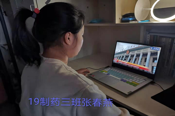 收看过程中,同学们认真聆听国务院总理李克强向大会所作的政府工作报告。开幕会结束后,同学们纷纷表示,更加紧密地团结在以习近平同志为核心的党中央周围,认真学习、深刻领会、扎实宣传和贯彻落实两会精神,要以越是艰险越向前的勇气、不用扬鞭自奋蹄的姿态,再接再厉、接续奋斗,迈准迈稳新征程的第一步,干出新气象、干出新成效,以优异成绩迎接建党100周年。