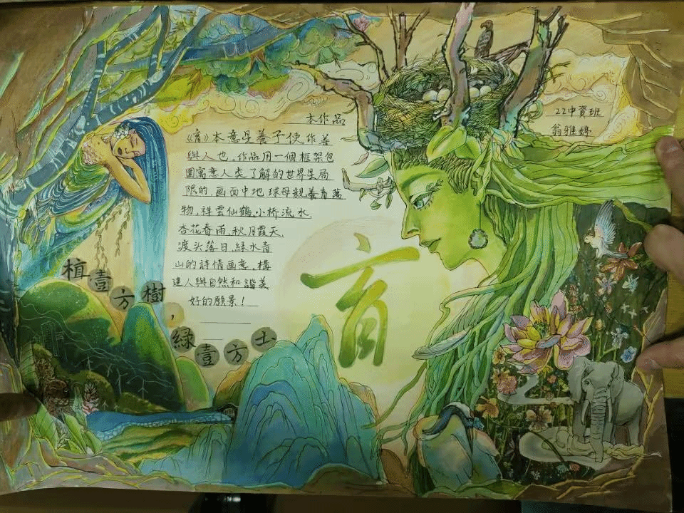 在此次活动中,我院同学积极参加,踊跃报名,各参赛选手将自己对于绿水青山,植树造林的理解融入手抄报中,通过奇妙的思想、优美的语言以及多元的文化,展示出自己对植树绿化的态度。经过评委公平公正的评选,一等奖获得者是22中资一班翁雅婷。