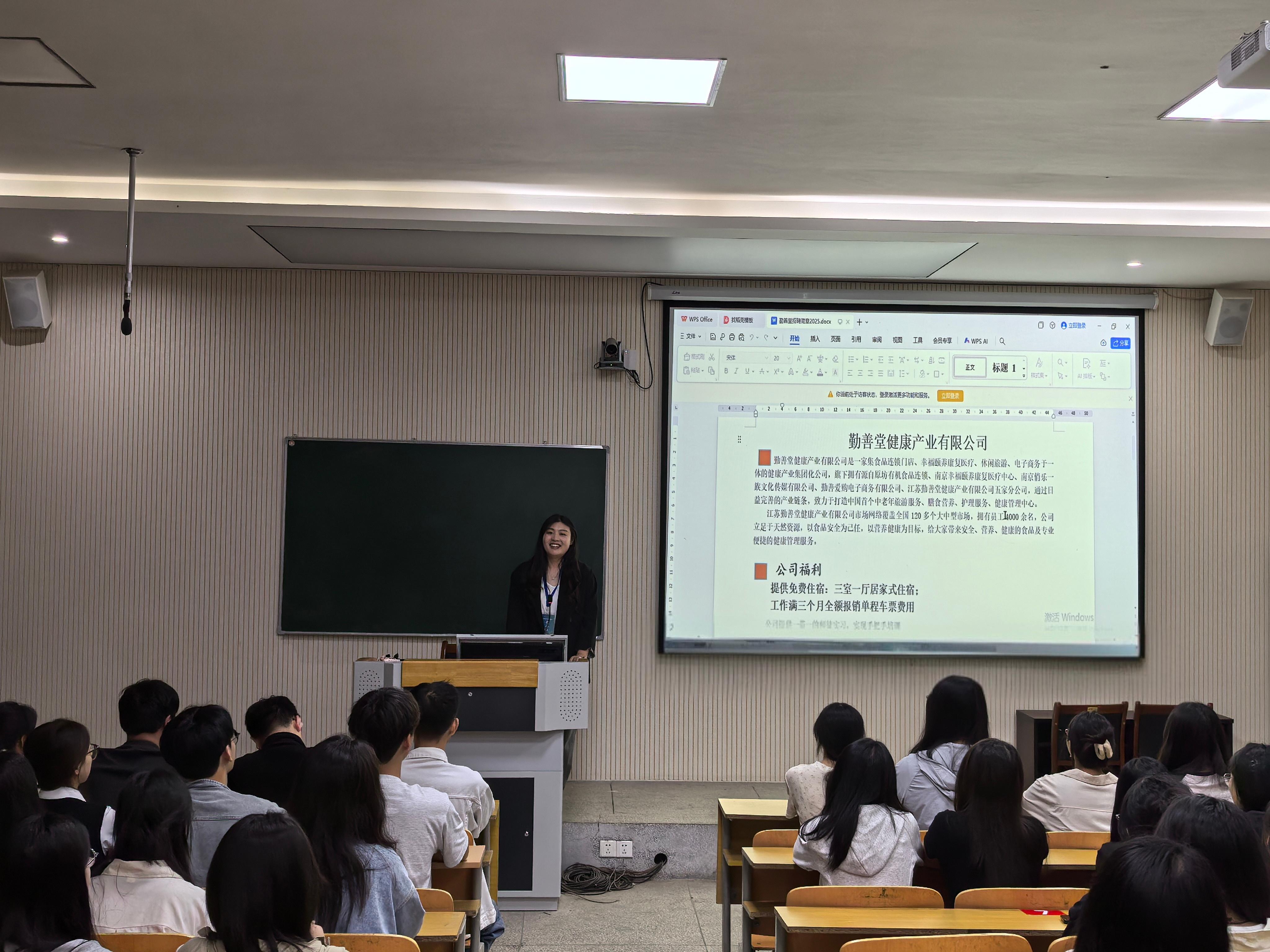互动提问阶段,现场气氛热烈。同学们围绕岗位具体职责、职业晋升路径、专业技能要求等方面踊跃提问,企业代表均给予耐心细致的解答。不少同学表示,通过此次宣讲会,对勤善堂以及健康产业有了更深入的认识,也明确了自身在专业学习上的努力方向。